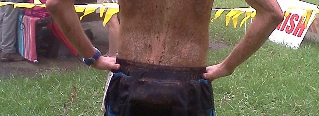 Arriving at the start to help set-up, we were met with a thick fog, as is typical of the rainforest area. Any hope Dad and I had of keeping our feet dry were quickly dashed carrying equipment through the damp grass of the finish area. Any hopes we had of keeping anything else dry were also dashed when the heavens opened up on all the runners huddling together at the race briefing. 10mintues before the race start I downed a Banana Hammer gel with a couple of swigs of water and then made the short trek to actual start line which was short walk down the road.